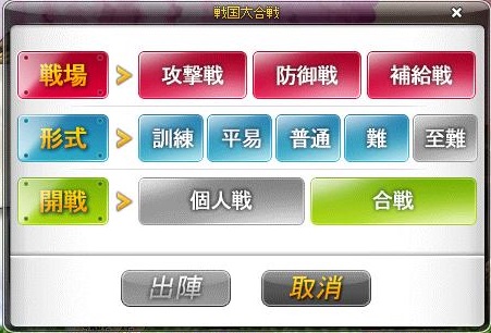 モウリ軍・タケダ軍・ウエスギ軍「至難」の合戦がおすすめ至難の場合はほとんど変わらないので正直どれを選んでもよいと思われる
